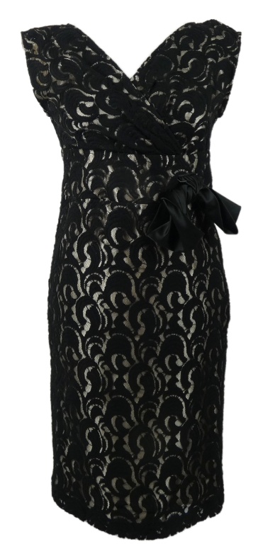 Dámské černo-béžové krajkové midi šaty s mašlí M&S