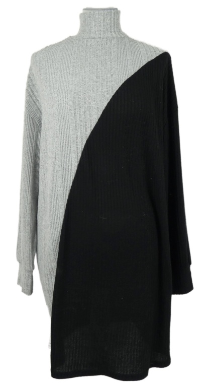 Dámské šedo-černé žebrované úpletové šaty se stojáčkem Shein