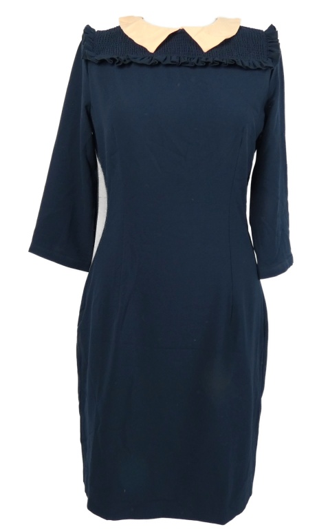 Dámské tmavomodré pouzdrové šaty s oranžovým límečkem Mint Berry