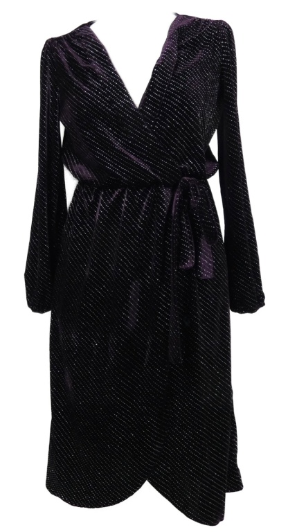 Dámské fialové třpytivé sametové midi šaty s páskem Voyelles