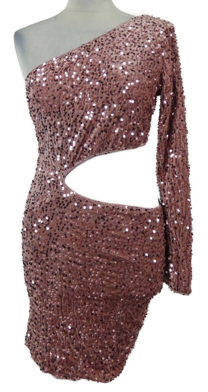 Dámské růžové flitrové sametové minišaty s průstřihem