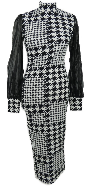 Dámské černo-bílé vzorované midi šaty se šifonovými rukávy Shein