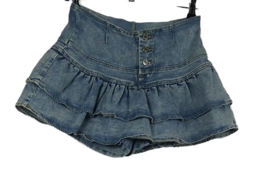 Dámská světlemodrá riflová sukně se všitými kraťasy a volánky Shein