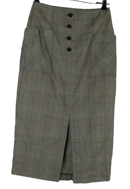 Dámská šedo-bílo-červená kostkovaná pouzdrová sukně s rozparkem