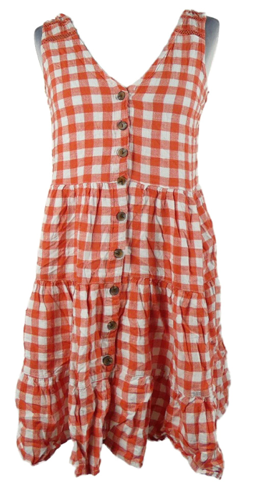 Dámské červeno-bílé kostkované lněné šaty Next