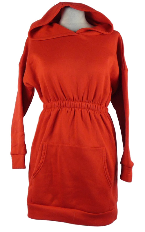Dámské červené teplákové šaty s kapucí