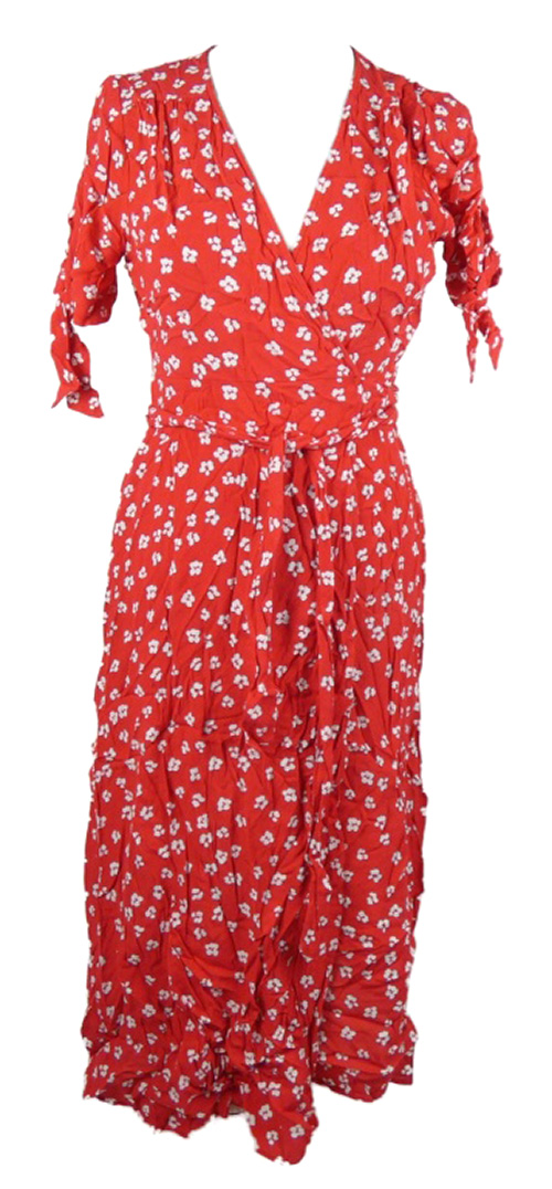 Dámské jahodové vzorované zavinovací midi šaty Seraphine