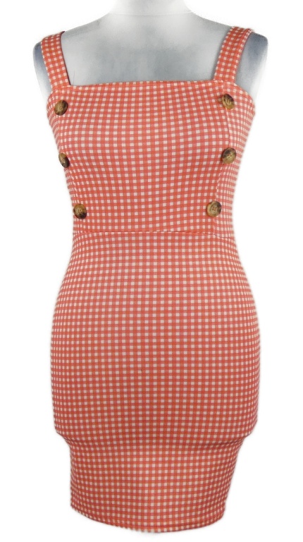 Dámské korálovo-bílé kostkované šaty