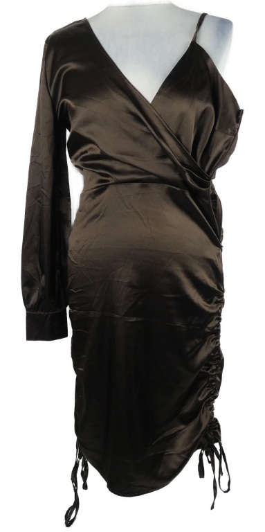Dámské hnědé saténové asymetrické šaty se stahováním PrettyLittle Thing