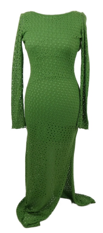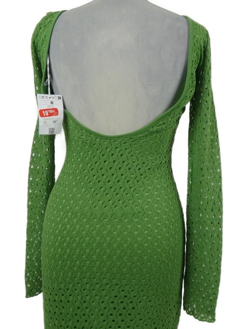 Nové - Dámské limetkové pletené perforované dlouhé šaty Berhska