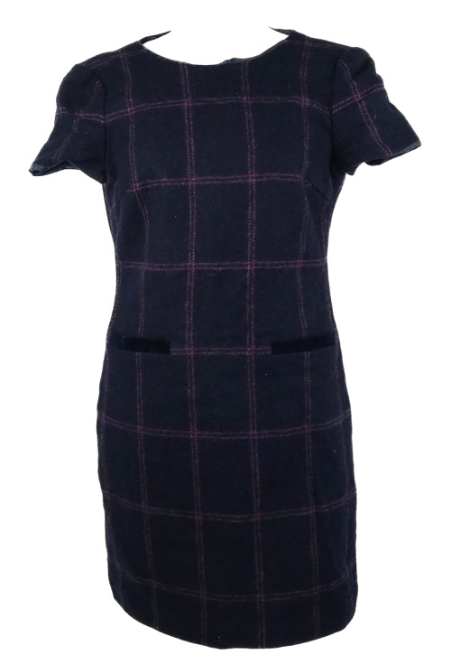Dámské tmavomodro-růžové kostkované vlněné šaty Hobbs