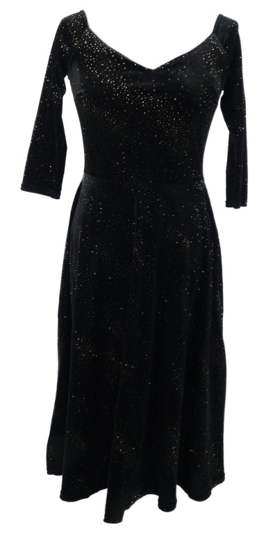 Dámské černé třpytivé sametové midi šaty
