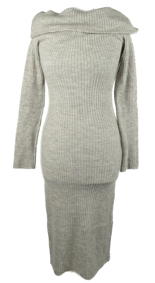 Dámské béžové žebrované svetrové šaty s komínovým límcem H&M