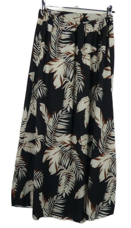 Dámská černo-bílo-hnědá dlouhá sukně s lístky