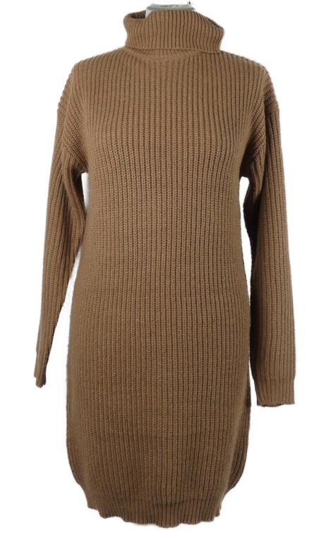 Dámské světlehnědé žebrované svetrové šaty s rolákem Boohoo