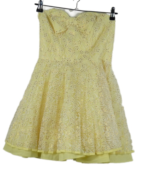 Dámské žluté kytičkované krajkové korzetové šaty s mašlí Jones + Jones