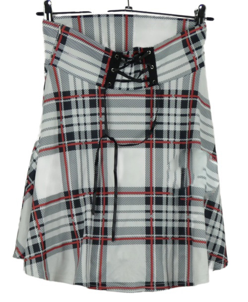 Dámská černo-bílo-červená kostkovaná sukně se šněrováním