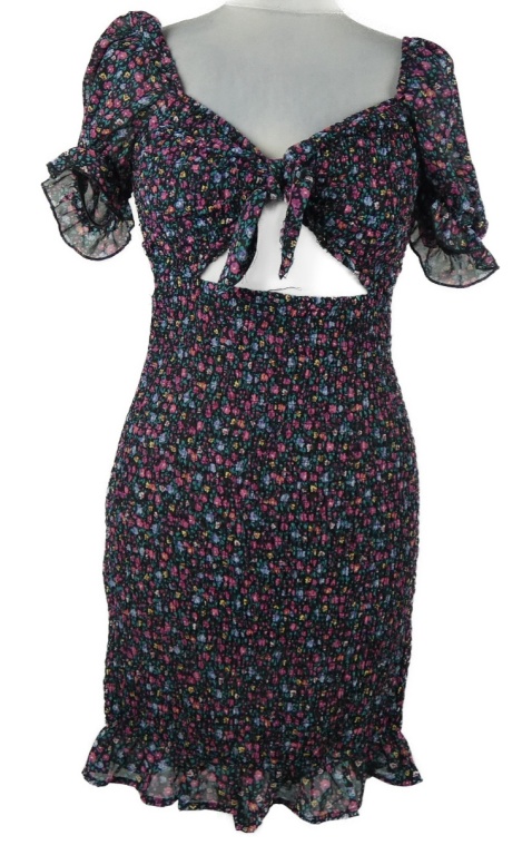 Dámské černé kytičkované šifonové žabičkové šaty s průstřihem FB Sister