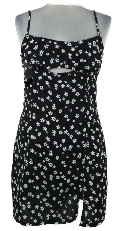 Dámské černé kytičkované minišaty s průstřihem PrettyLittle Thing