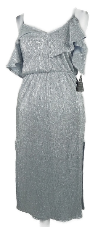 Nové - Dámské stříbrné plisované midi šaty s volnými rameny