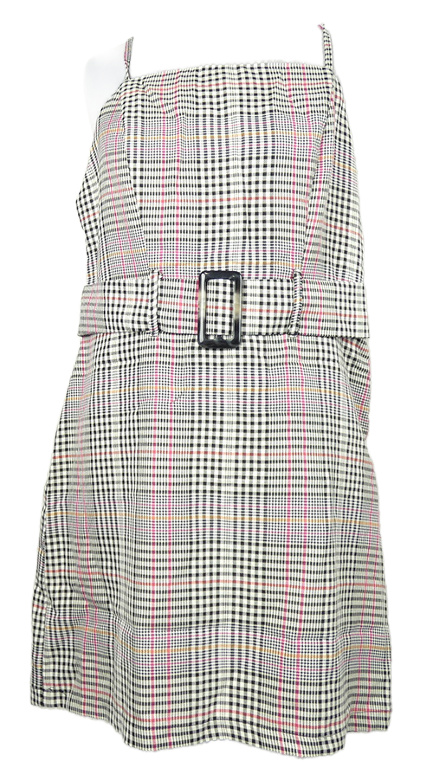 Dámské bílo-růžovo-černé kostkované šaty s páskem