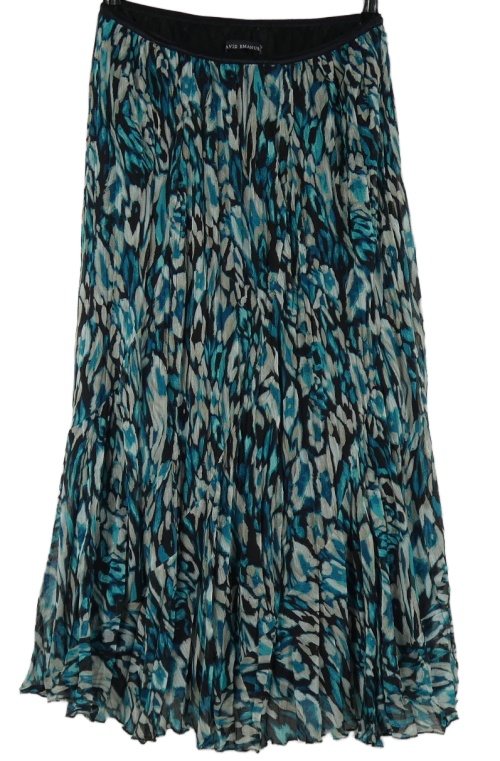 Dámská tyrkysovo-šedo-tyrkysová vzorovaná žoržetová midi sukně David Emanuel