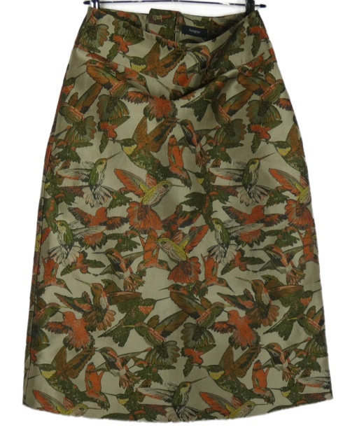 Dámská zlato-khaki vzorovaná midi sukně s kolibříky M&S