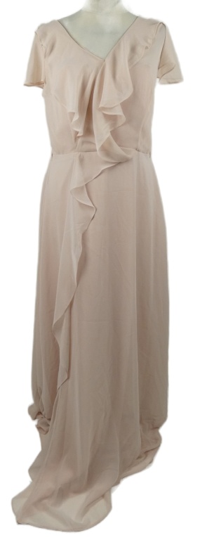 Dámské světlerůžové šifonové žabičkové dlouhé šaty s volánky Showcase