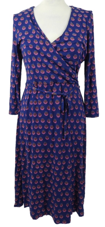 Dámské tmavomodro-růžové puntíkované midi šaty s provázkem v pase White Staff