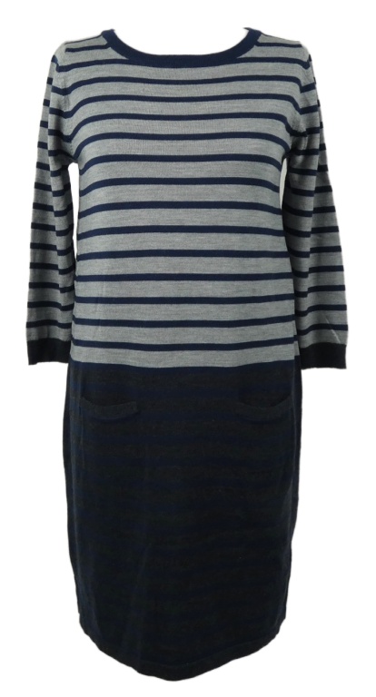 Dámské šedo-tmavomodré pruhované svetrové vlněné šaty Jigsaw
