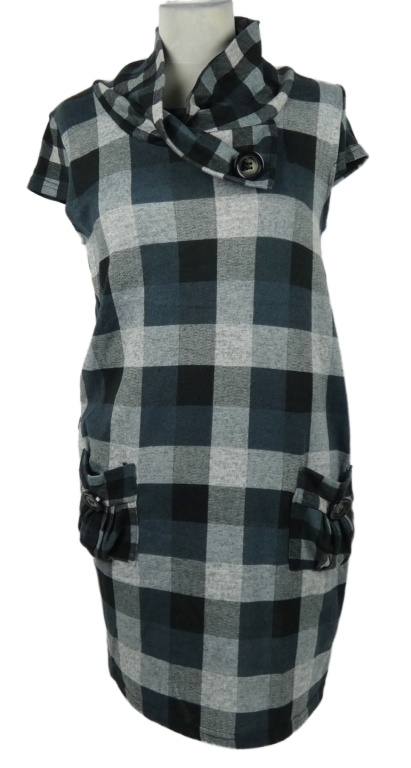 Dámské tmavomodro-černé kostkované pletené šaty Stella