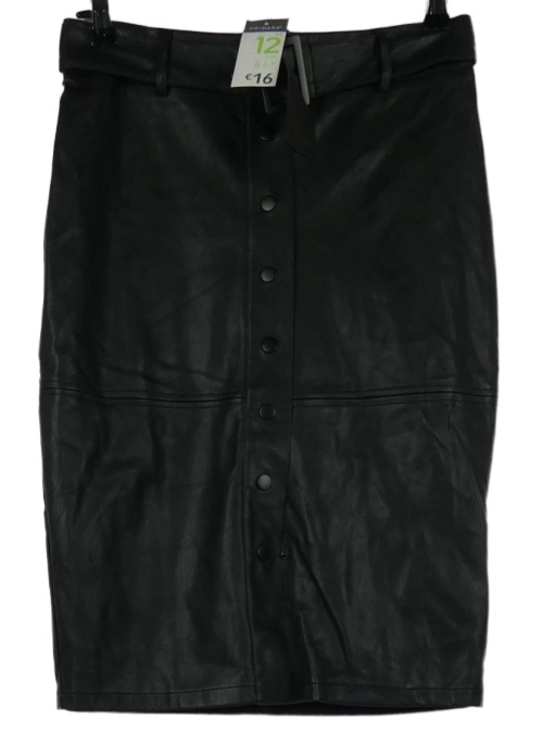 Nové - Dámská černá koženková midi sukně s páskem Primark