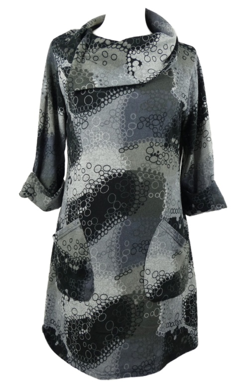 Dámské černo-šedé vzorované svetrové šaty s límcem Izabel