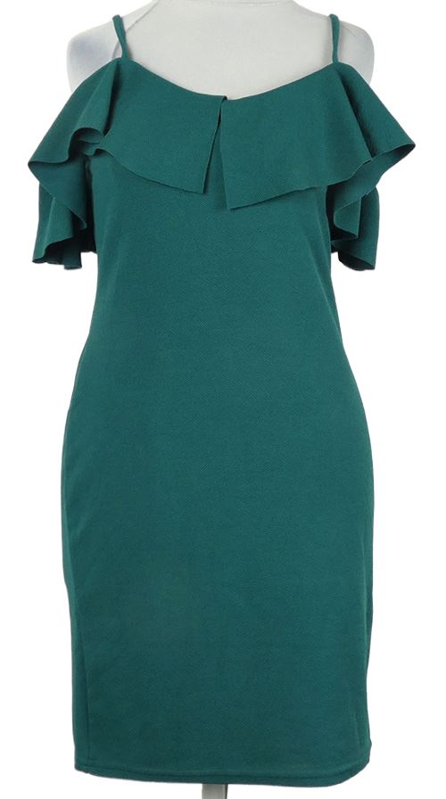 Dámské tmavozelené šaty s volnými rameny a volánkem MissGuided