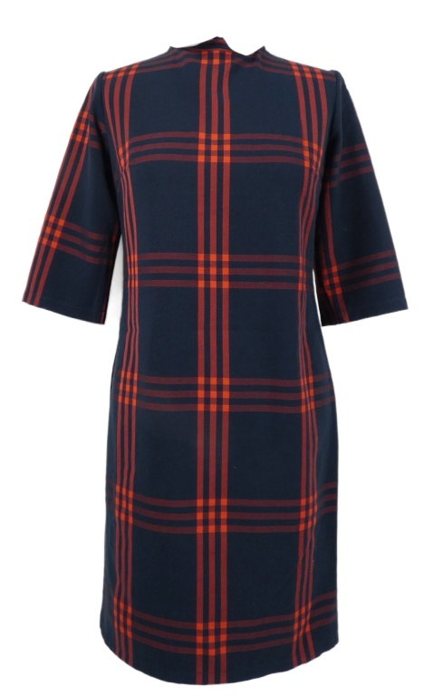 Dámské tmavomodro-červené kostkované šaty s límečkem