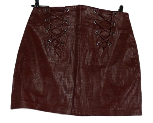 Dámská vínová vzorovaná koženková sukně se šněrováním Stradivarius