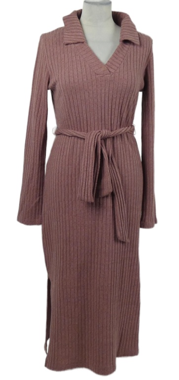 Dámské starorůžové žebrované úpletové midi šaty s páskem Stella Morgan