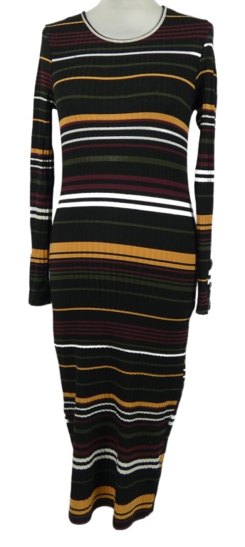 Dámské černo-barevné pruhované žebrované midi šaty Primark