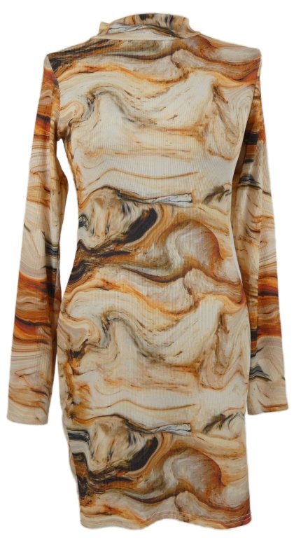 Dámské béžovo-oranžové vzorované žebrované šaty