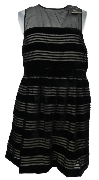 Nové - Dámské černé sametovo-organzové pruhované šaty Jack Wills