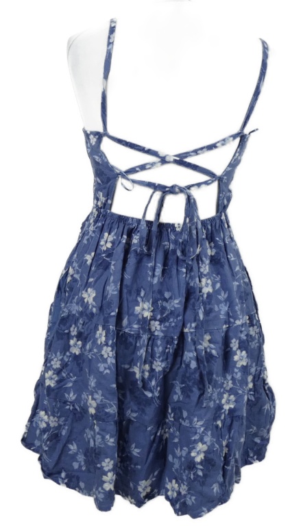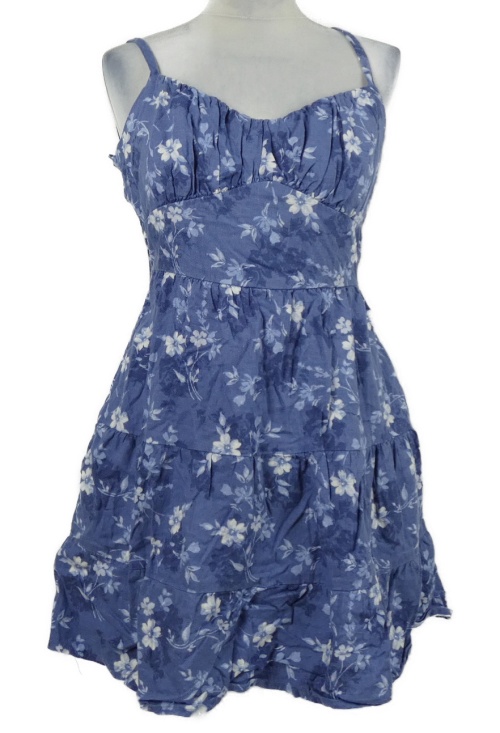 Dámské modré kytičkované lněné šaty se šněrováním Hollister