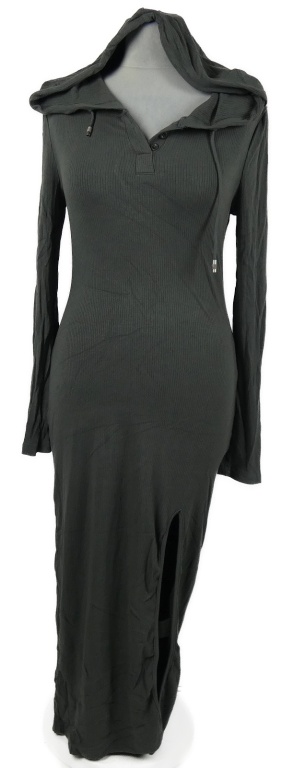 Dámské šedé žebrované dlouhé šaty s rozparkem a kapucí Shein