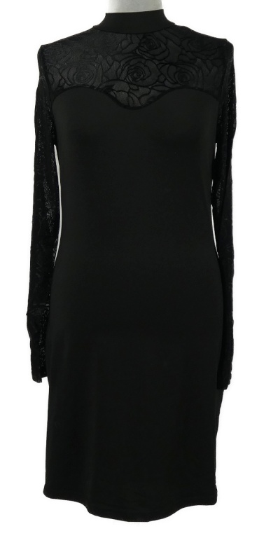 Dámské černé šaty s tylovými květovaný rukávy a výstřihem