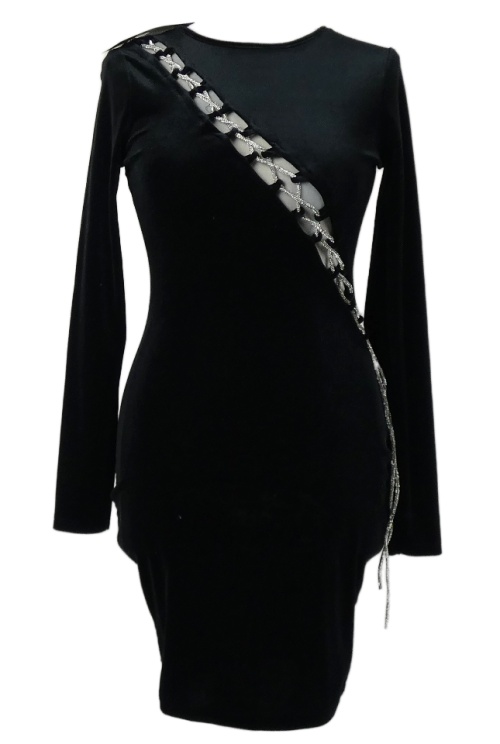 Nové - Dámské černé sametové slavnostní šaty se šněrováním FB Sisters