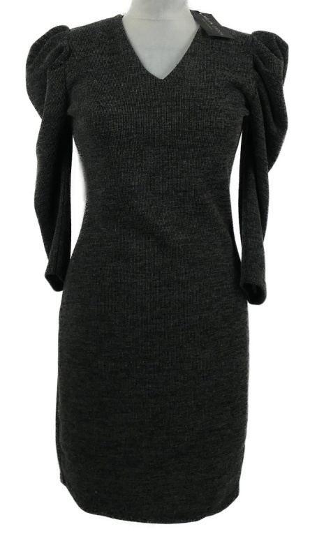 Nové - Dámské tmavošedé melírované pletené šaty s nabíranými rukávy Mela Loves London