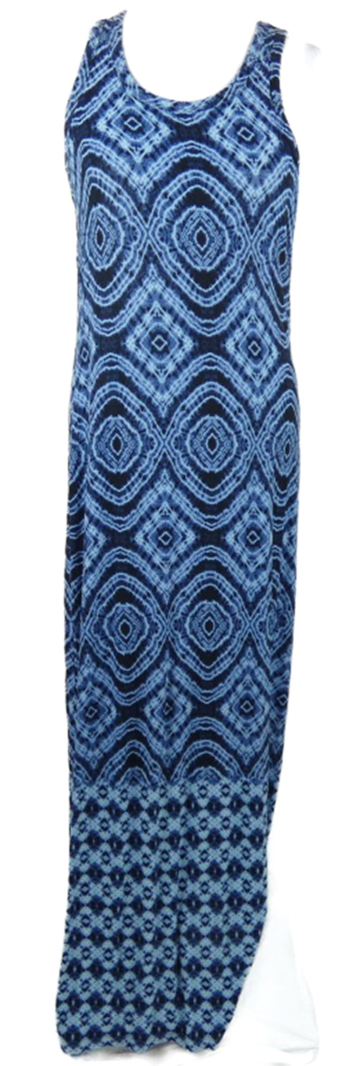 Dámské tmavomodro-modré batikované dlouhé šaty Artisanny