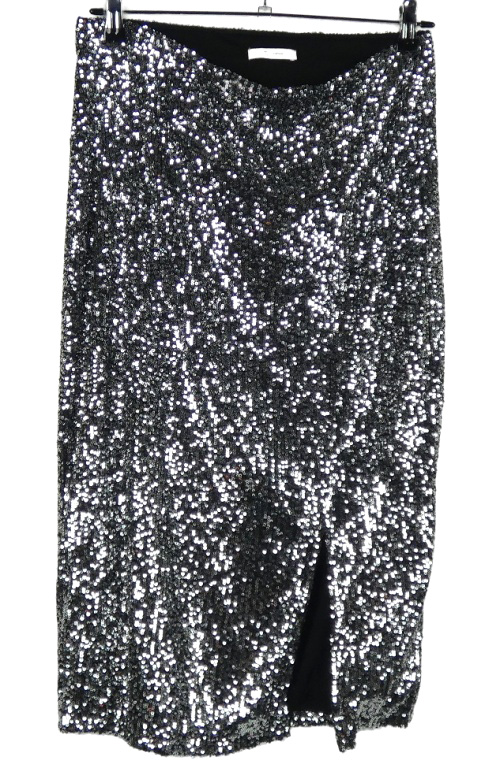 Dámská černo-stříbrná flitrová midi sukně TU