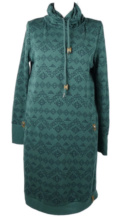 Dámské petrolejovo-tmavomodré vzorované teplákové šaty s komínovým límcem Gina