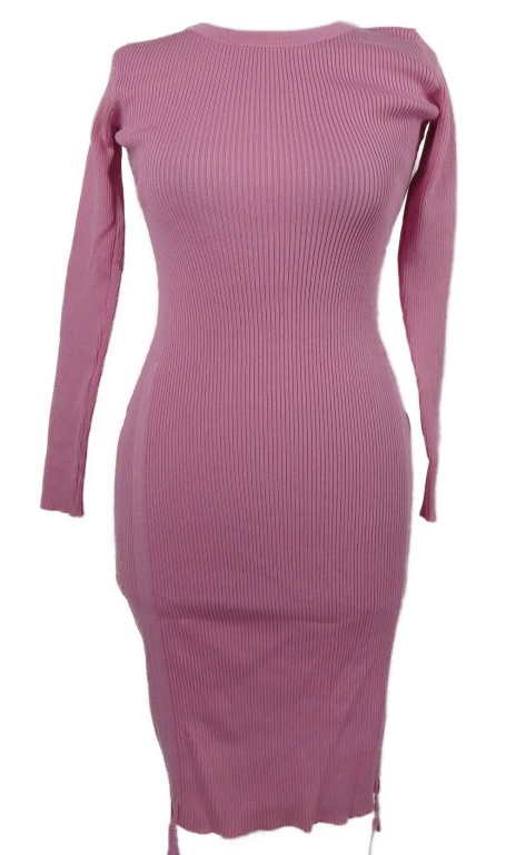 Dámské růžové žebrované pletené šaty