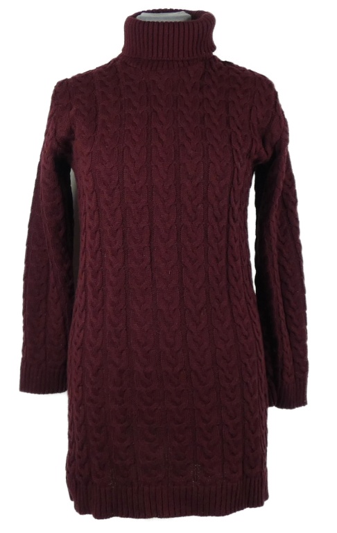 Dámské vínové vzorované svetrové šaty s rolákem Pixie Girl